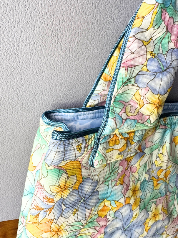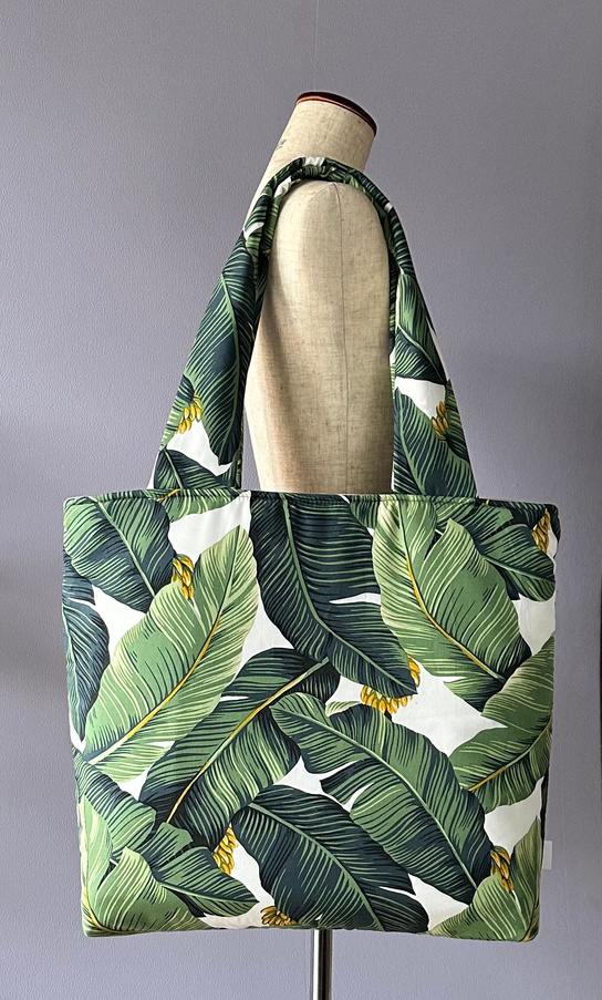 また肩掛けしやすい太い長めの持ち手にキルト芯を挟みふわふわで